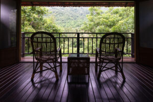 Step onto the Ananda Thara, and the Western Ghats unfurl before you. The Seetharkund waterfalls are in full view — a constant, cascading presence. Above, Parnashala, a wooden indoor deck with fully openable walls invites you to breathe with the mountains.